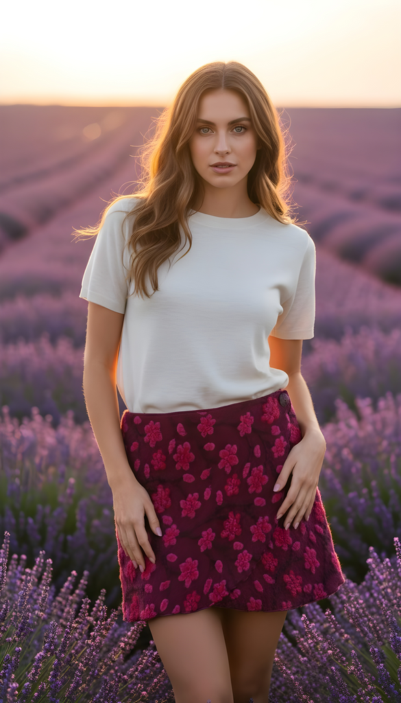 weinrot mit Blumenmuster in Ppink/beere Material: 80% Wolle 20%Baumwolle